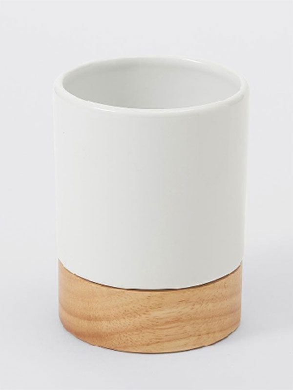 • Exzellenz in der Dual-Material-Technologie: Hergestellt aus hochgebrannter, glasierter Keramik für einen wasserdichten, fleckenbeständigen Korpus, kombiniert mit massivem, nachhaltig gewonnenem Holz für warme, natürliche Akzente.