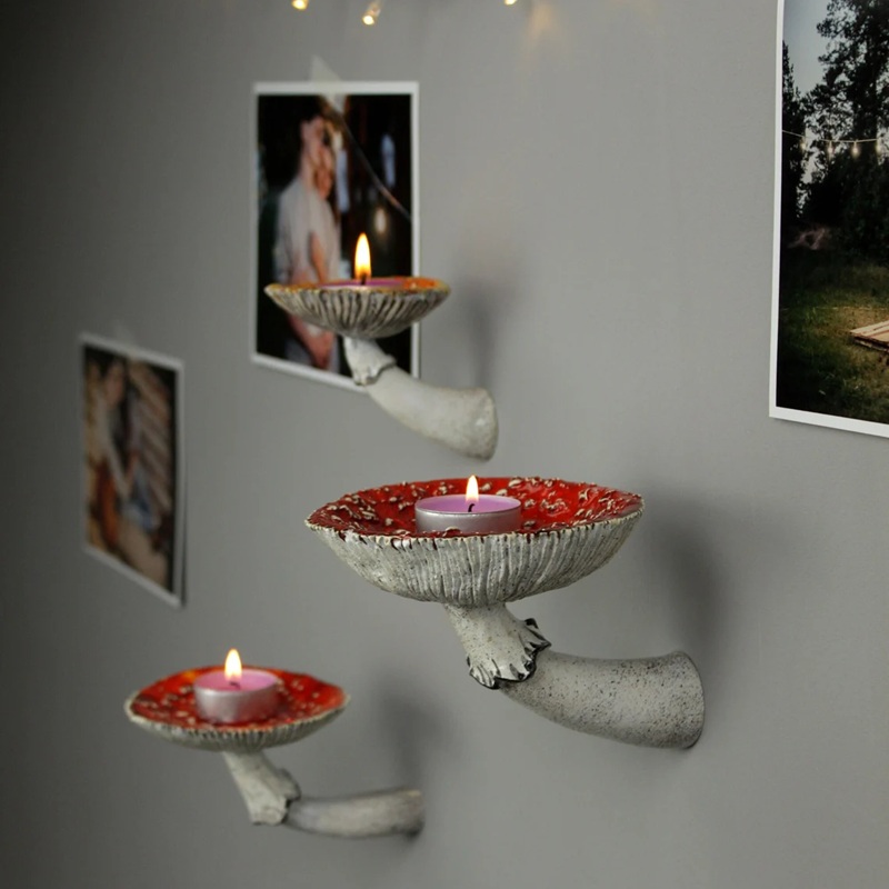 Function: Mushroom wall shelves are perfect for candles, jewelry, keys, coins and small plants, in the hallway, bedroom, kitchen or bathroom. They can be an unusual gift for your loved ones.