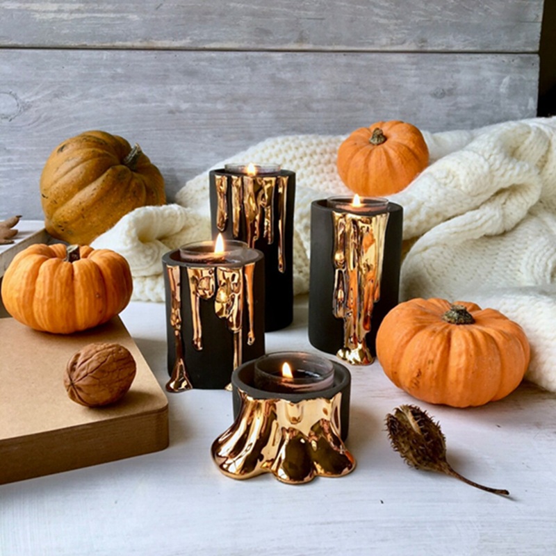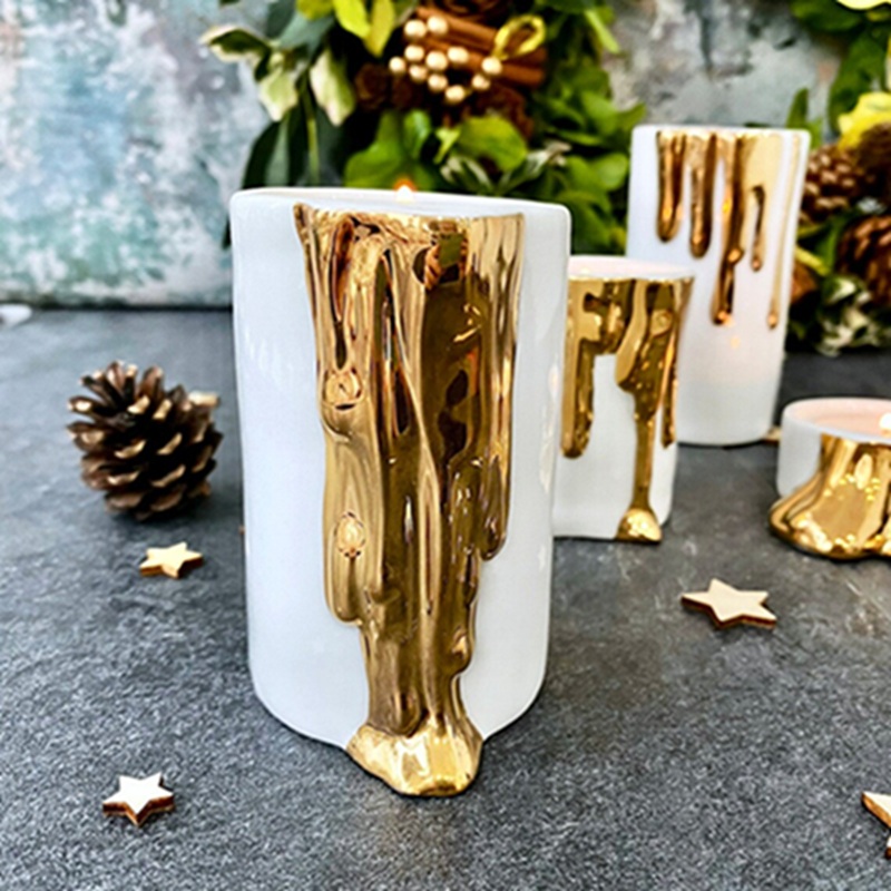• Artistic gold drip detail: Hand-applied gold glaze mimics natural melted wax, creating a dynamic, whimsical look