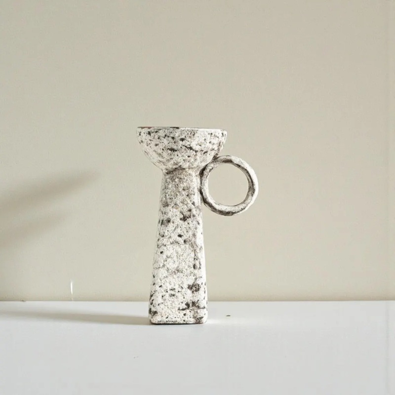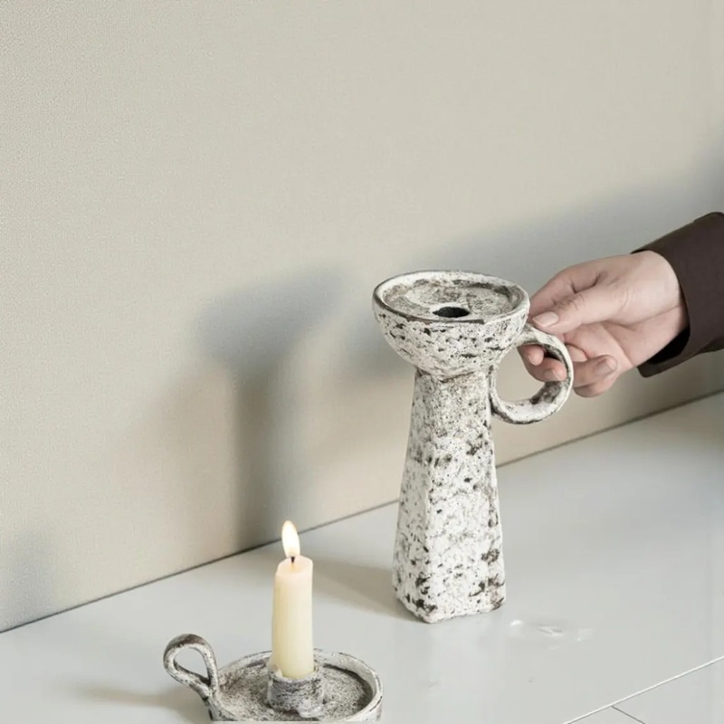 Function: These are more than just candle holders; they are miniature sculptures designed to be captivating focal points. Their earthy, black and white finish and distinctive handles make them a perfect addition to any Japandi, rustic, or minimalist interior.